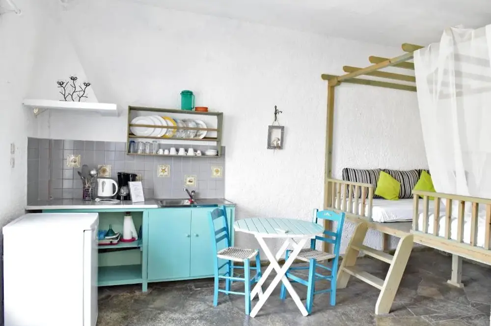 В гръцки стил, ако не и в стила ми на майка ми, идеални за тези, които искат да се потопят в реалността на филма. В допълнение, много милите и приветливи хазяи, винаги на разположение, ни помогнаха да намерим местата, които да отидем и ресторанти, където да се храним типични, а не обичайните туристически клубове. Структурата се намира на няколко минути от плажовете, които също могат да се стигнат пеша и до автобусните спирки, за да отидат до Скопелос и Глака
